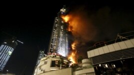 Maafisa wanasema moto huo ulianzia nje ya hoteli, kiasi cha tatu na nusu kwa saa za Dubai. Maafisa wanasema wazima moto wangali wanajaribu kuuzima moto huo.
